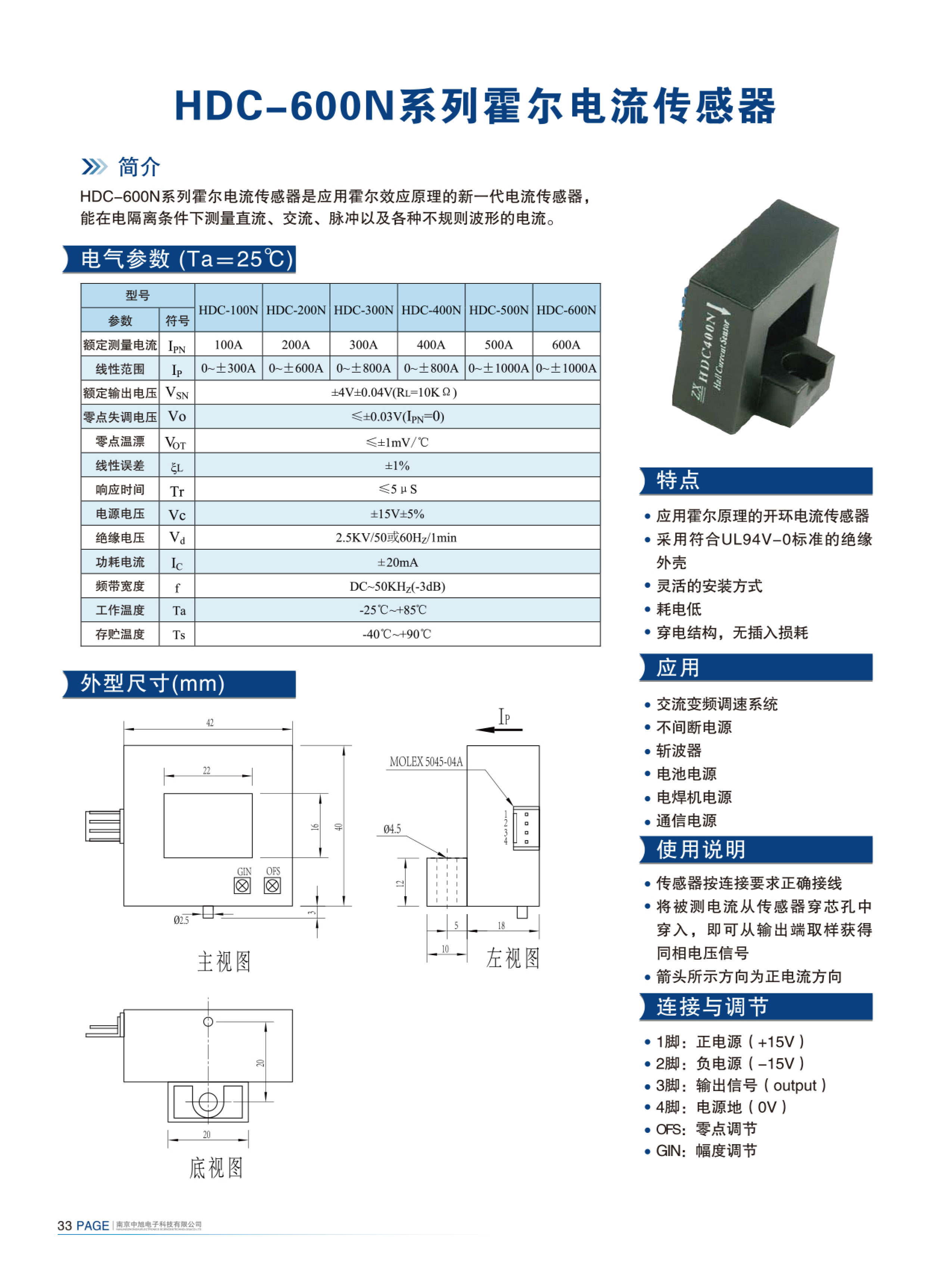 HDC-600N系列霍爾電流傳感器是應用霍爾效應原理的新一代電流傳感器,能在電隔離條件下測量直流、交流、脈沖以及各種不規(guī)則波形的電流。