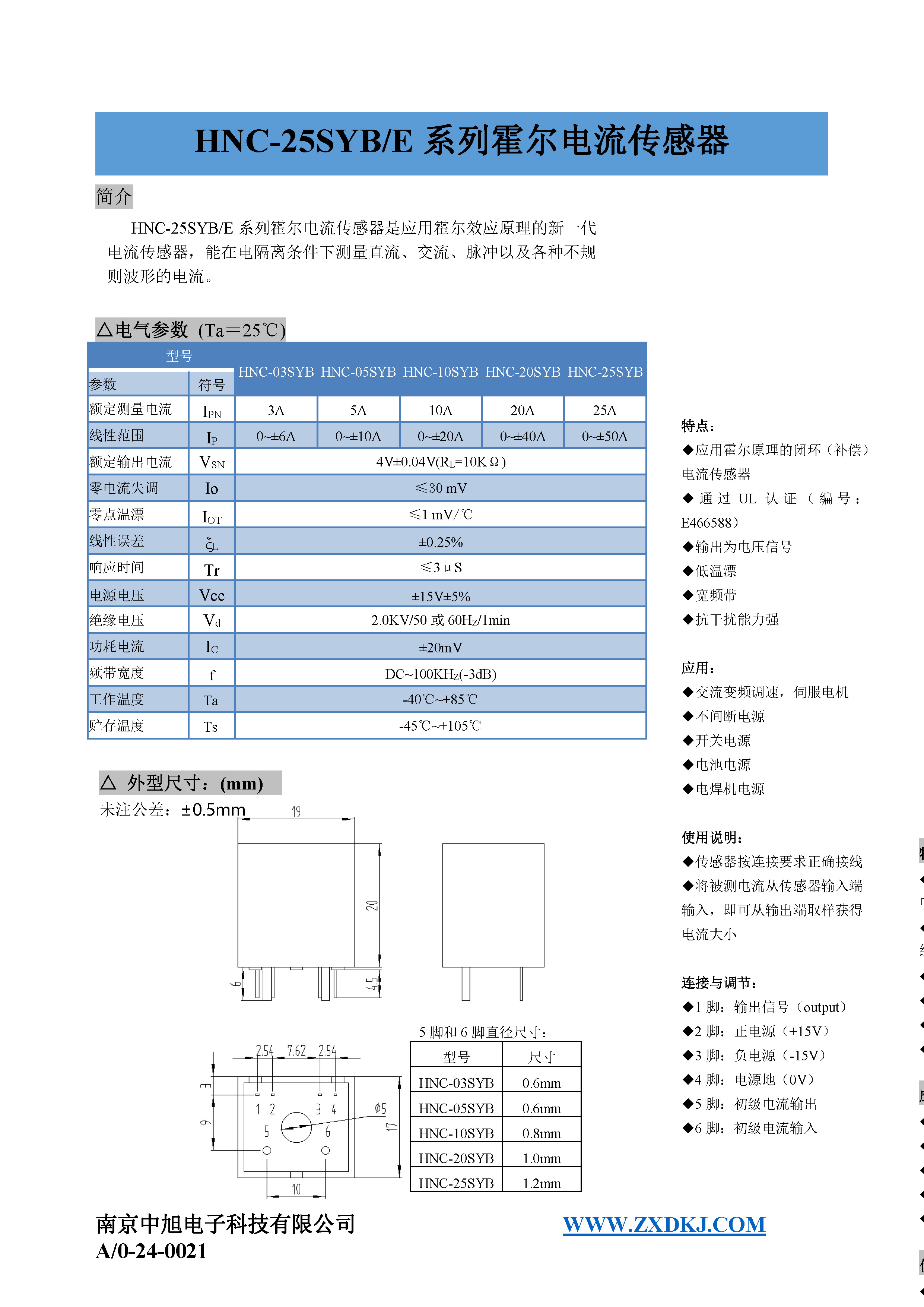 HNC-25SYB系列霍爾電流傳感器是應(yīng)用霍爾效應(yīng)原理的新一代電流傳感器,能在電隔離條件下測(cè)量直流、交流、脈沖以及各種不規(guī)則波形的電流。